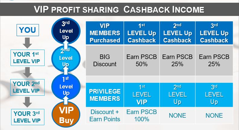 We also offer a wide range of Payment Solutions for MERCHANTS and eCommerce Platform for their PRODUCTS and empower all VIP Members to patronize by providing discounts & PS Cashback Income Opportunity.